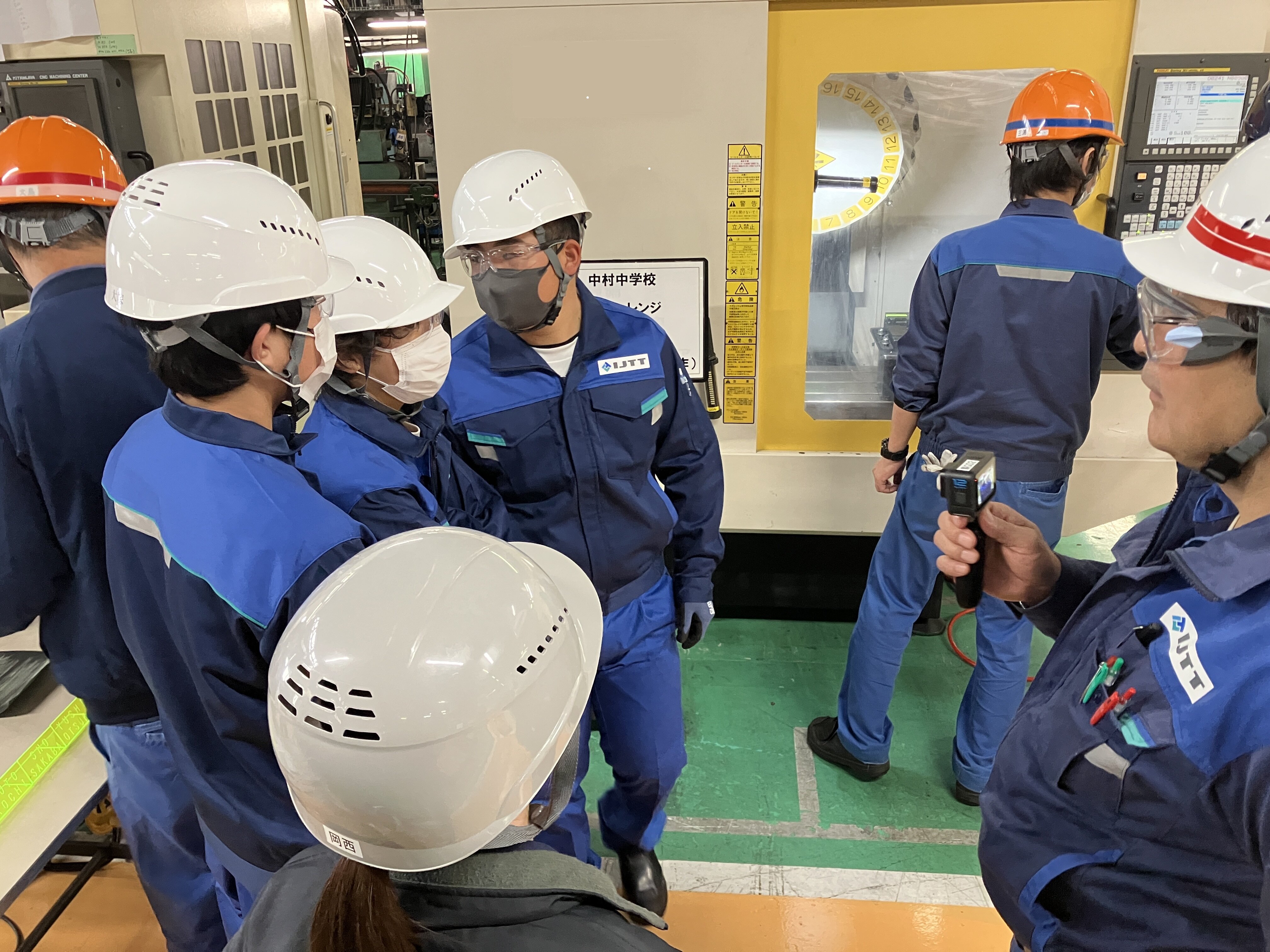 その後、工場見学、安全教育、測定教育やものづくり体験、さらに神棚へのお供えについて、実際に実演を行いながら解説し、生徒たちが職場体験をより実りあるものにできるよう生徒の学びを支援しました。