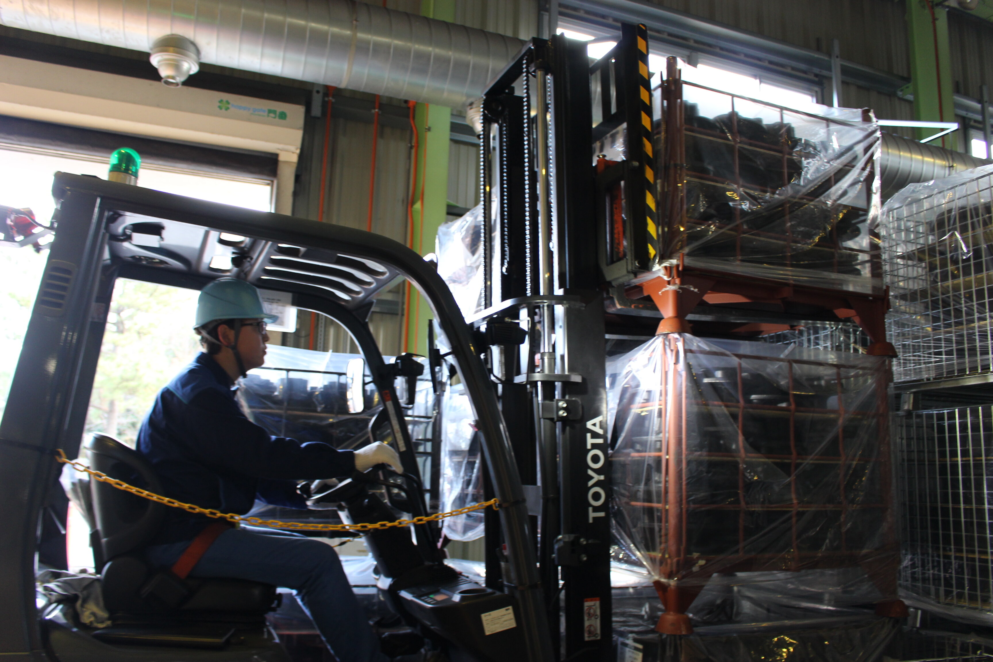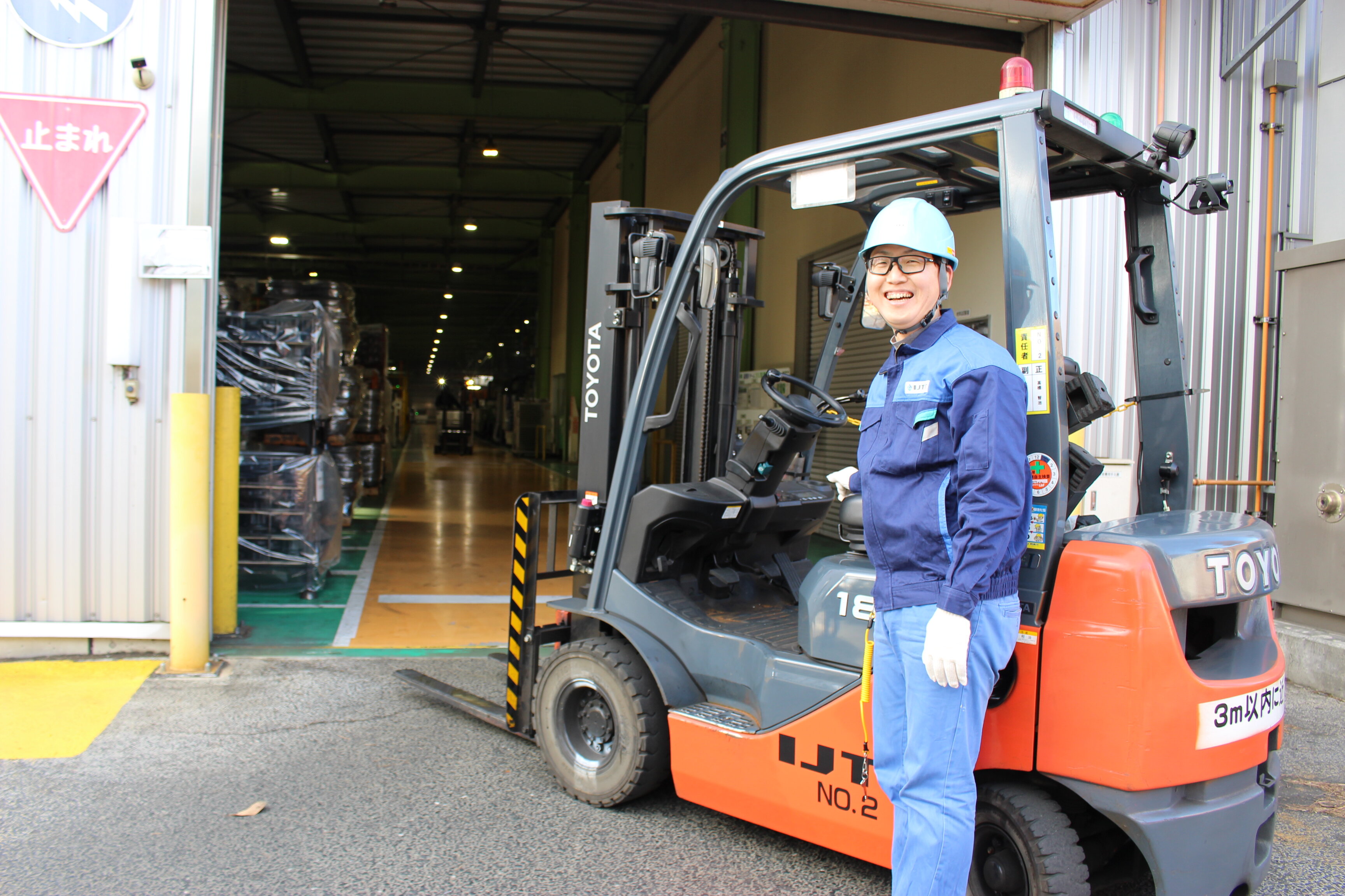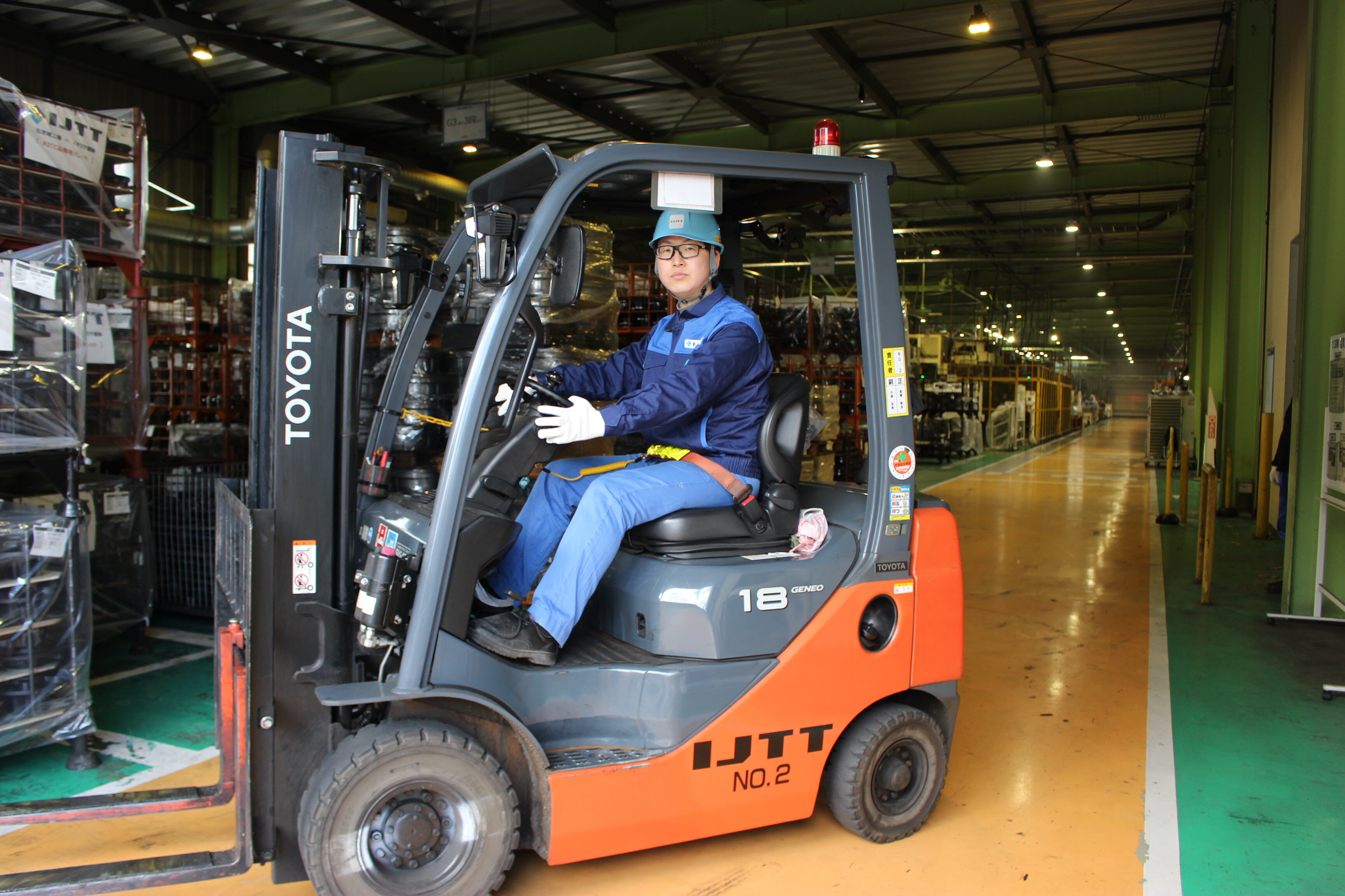 イシは入社して17年目(当時はアイメタルテクノロジー)。北茨城工場でフォークリフトによる素材・完成品の運搬(出荷前の最終段取り)を担う。搬出のトラックドライバーが迷わず製品を受け取れるよう識別カードを付けるなど、細やかな配慮で生産現場の物流を支えている。